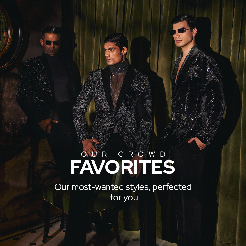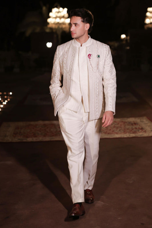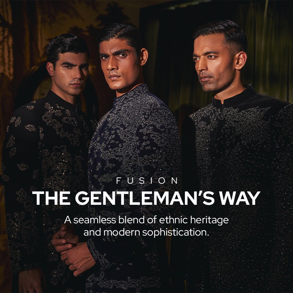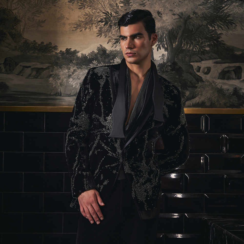 Black bandhgala highlighted with pearls and sequins