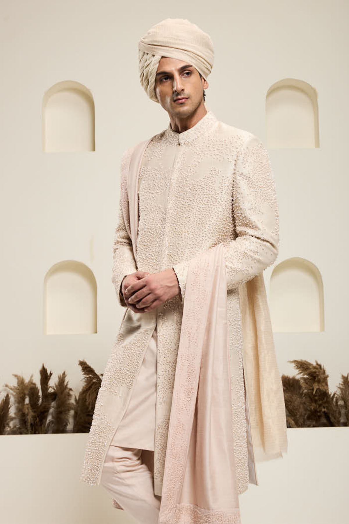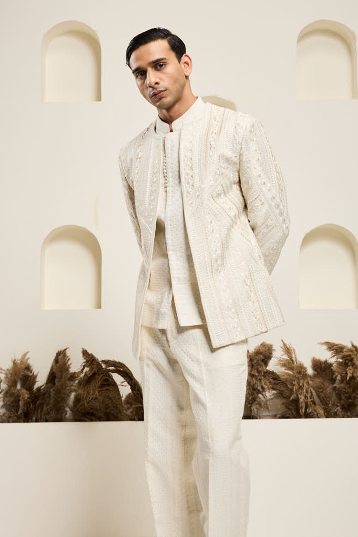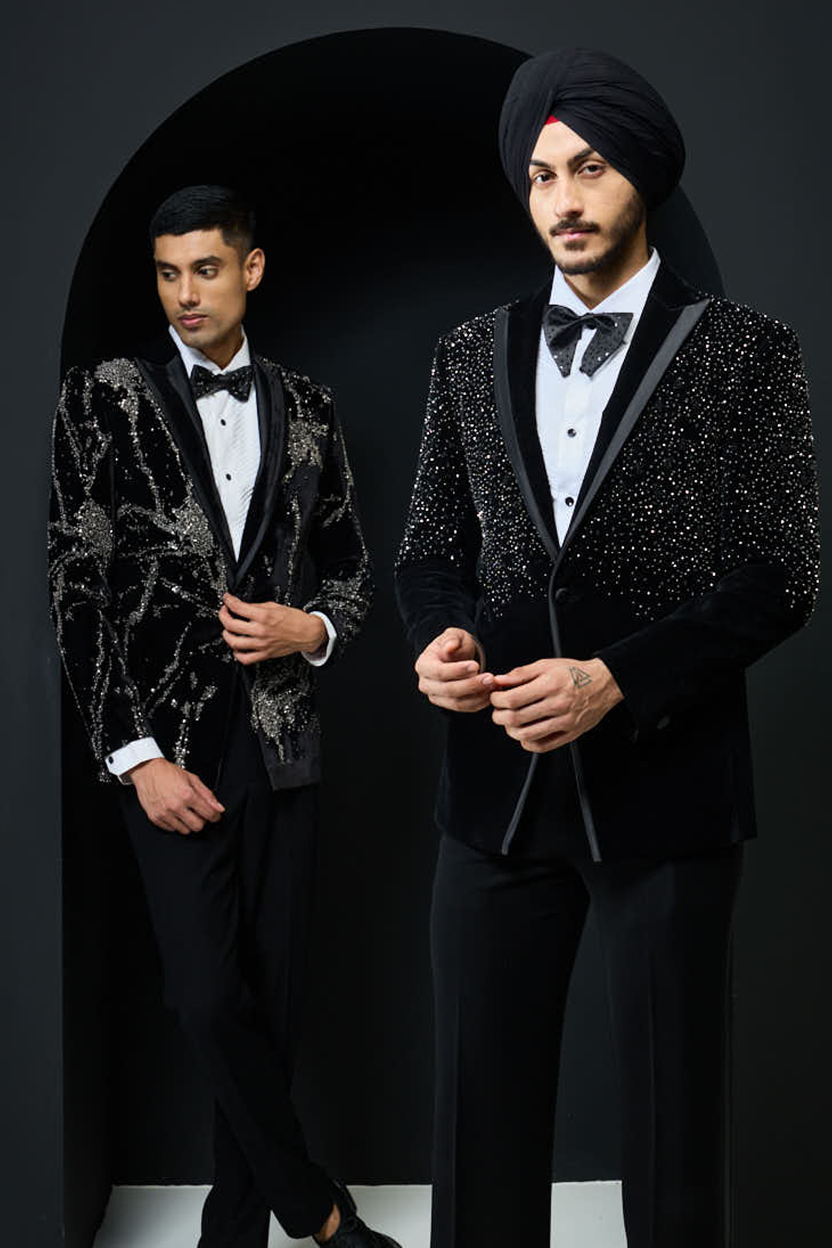 Black bandhgala highlighted with pearls and sequins