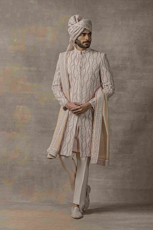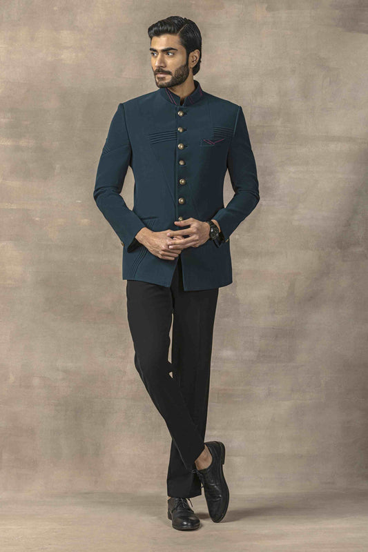 Aqua dhagai sherwani highlighted with 3d thread work and pearl