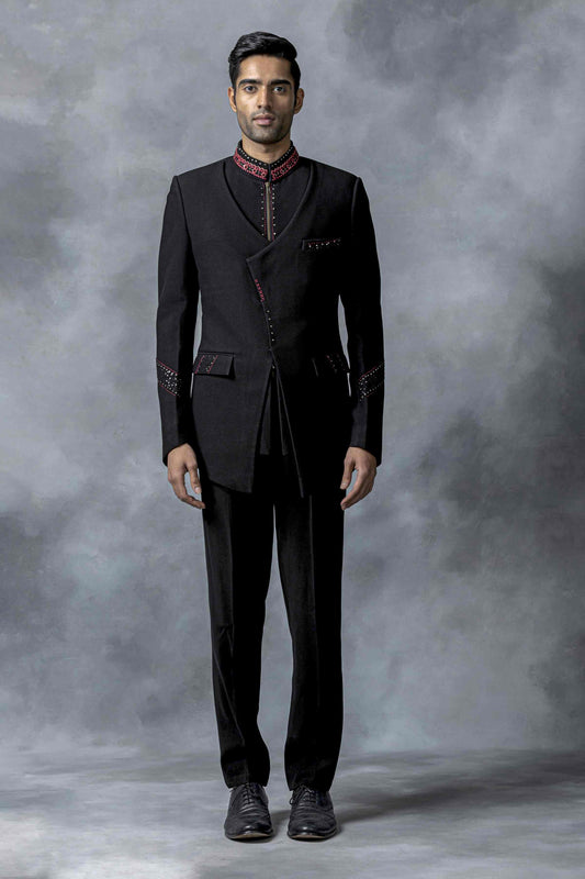 Black bandhgala with pintuck panels