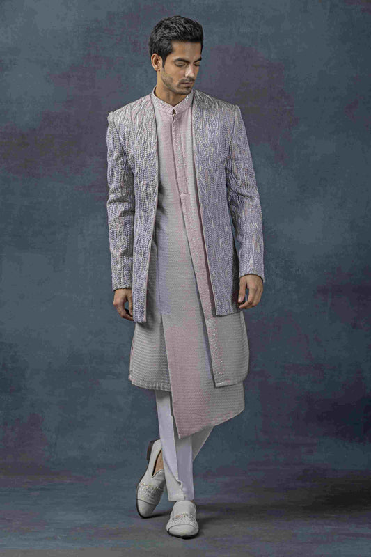 Lavender panel bandhgala set