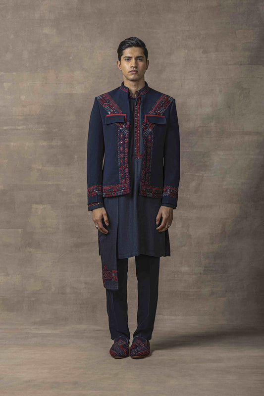 Navy bandhgala with panels