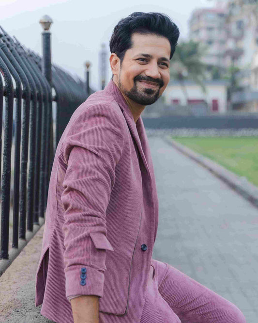 Sumeet vyas in salmon pink corduroy set