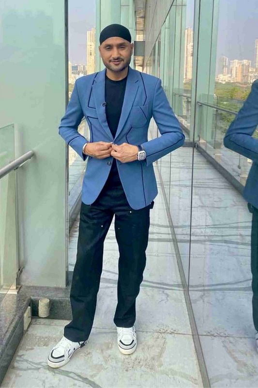 Harbhajan singh in blue blazer with contrast piping