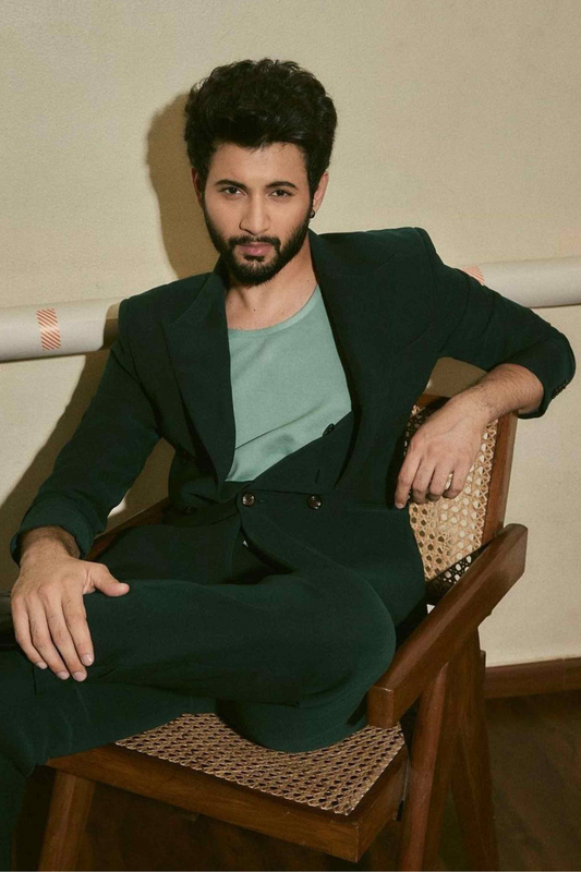 Armaan malik in teal tuxedo with satin detailing