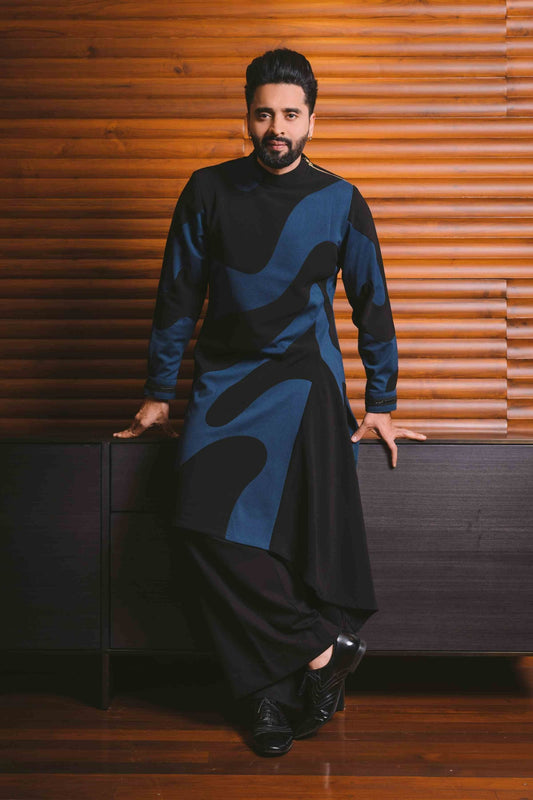 Jackky bhagnani in black and blue applique work kurta set