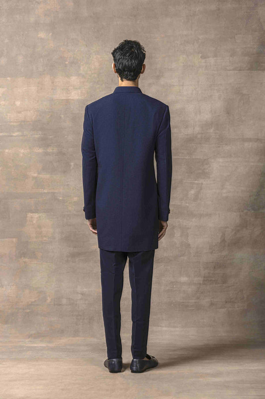 Navy blue indo western highlighted with silver zari sequins pearl and cutdana