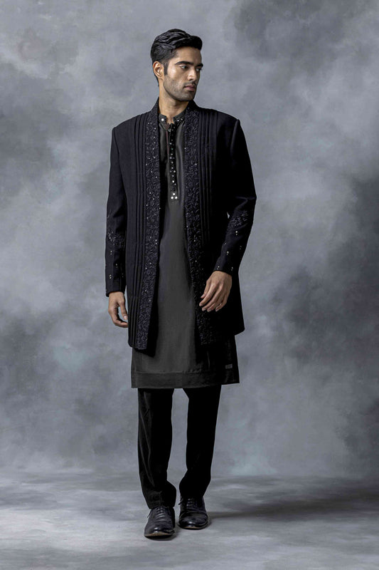 Teal indo western highlighted with pearl sequins cutdana and spring thread work