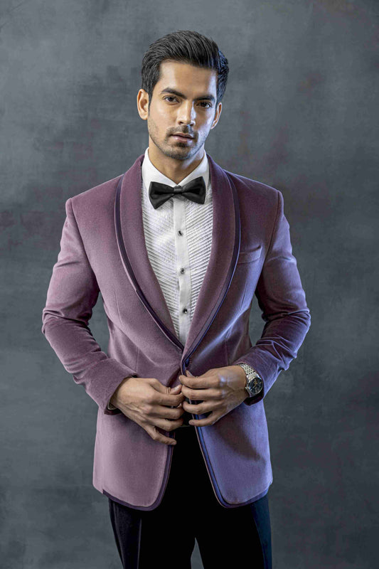 Purple tuxedo with satin detailing