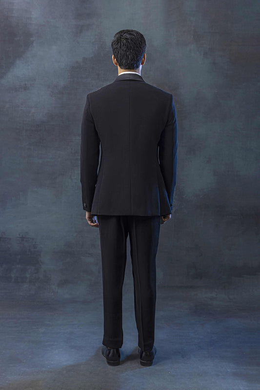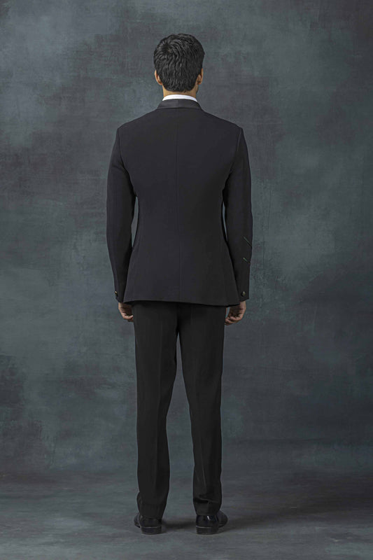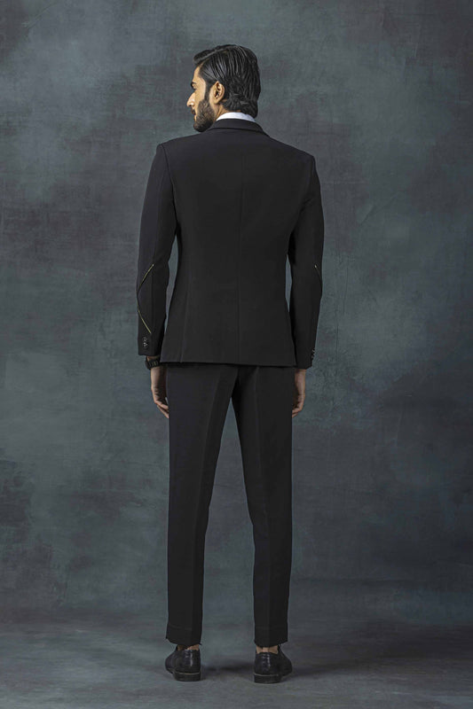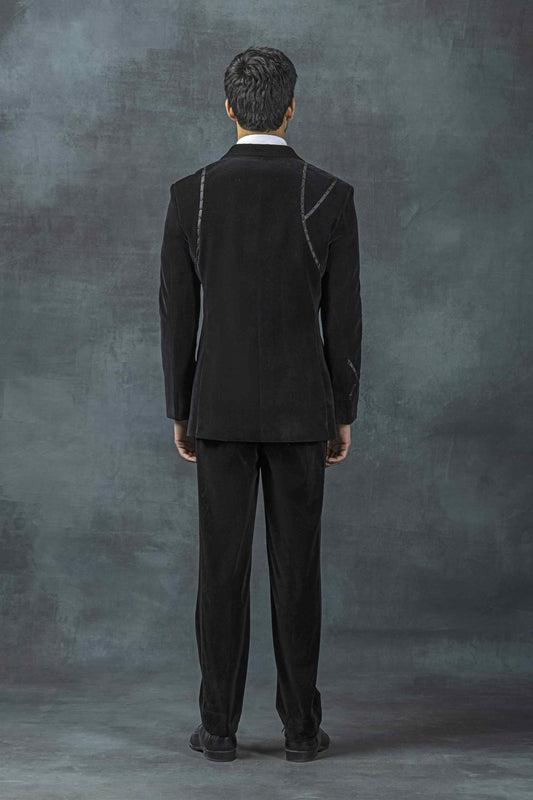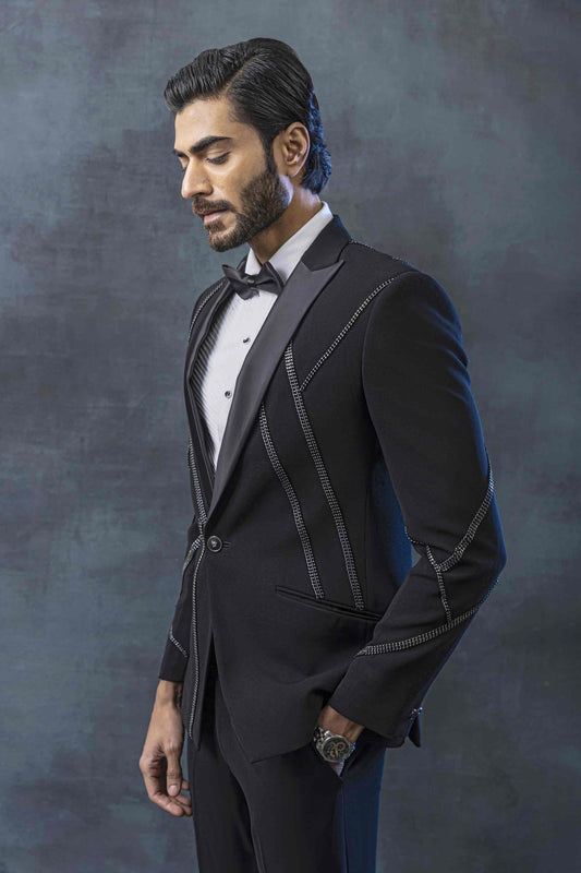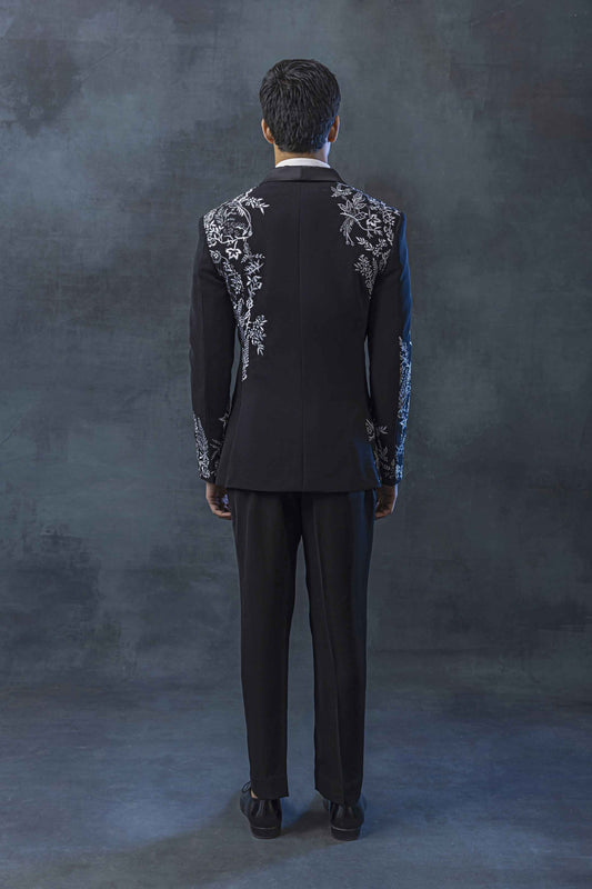 Black tuxedo with white thread embroidery