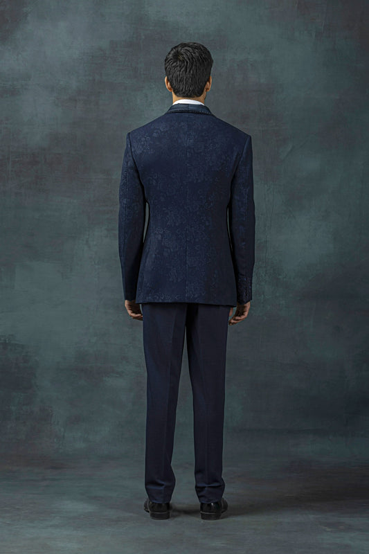Navy jacquard frill tuxedo