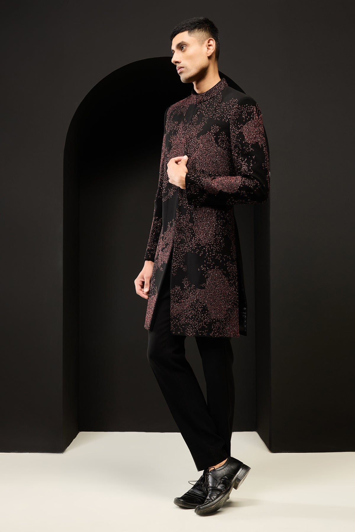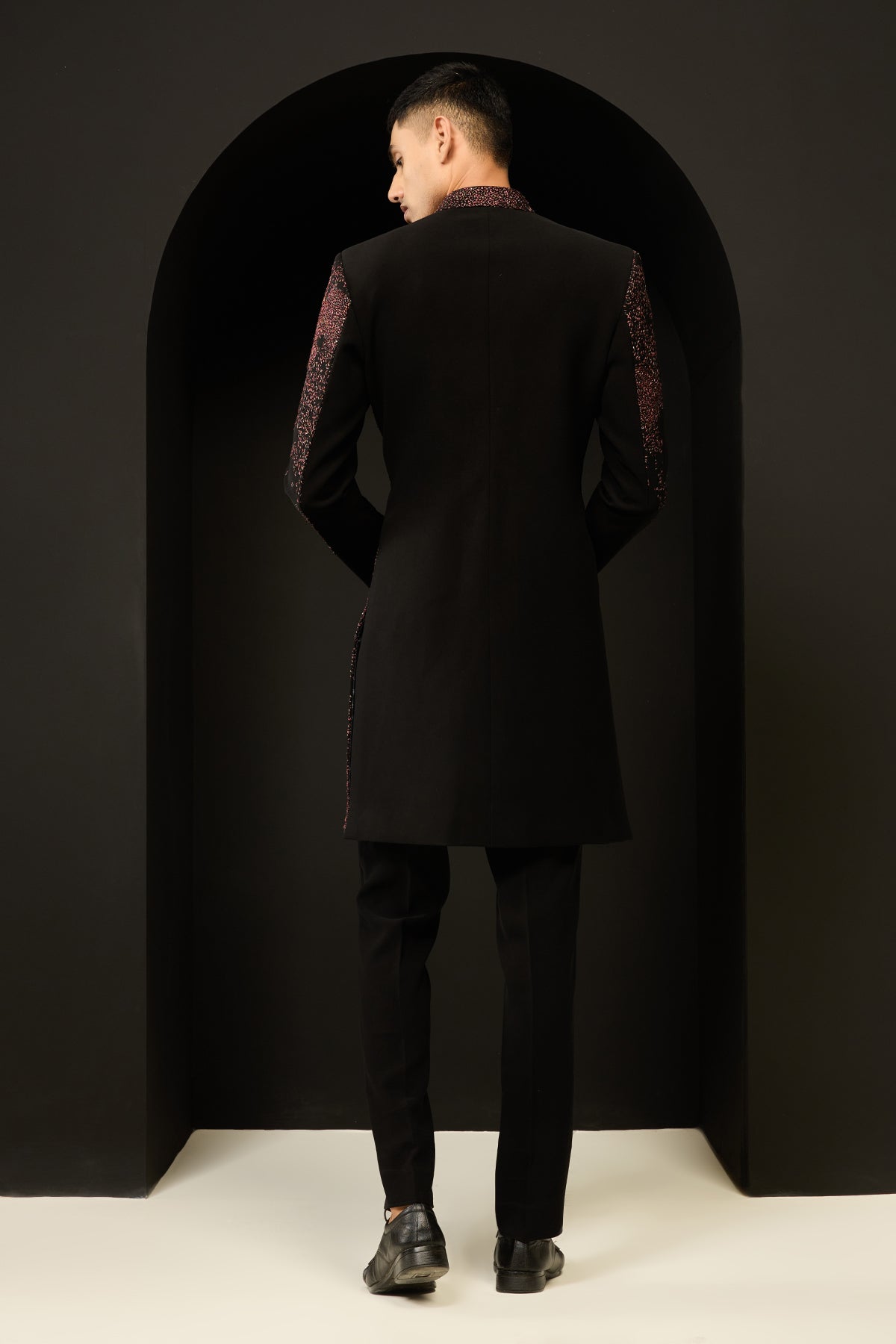 Black indo Western highlighting with sequins, pearls and thread work paired with parents