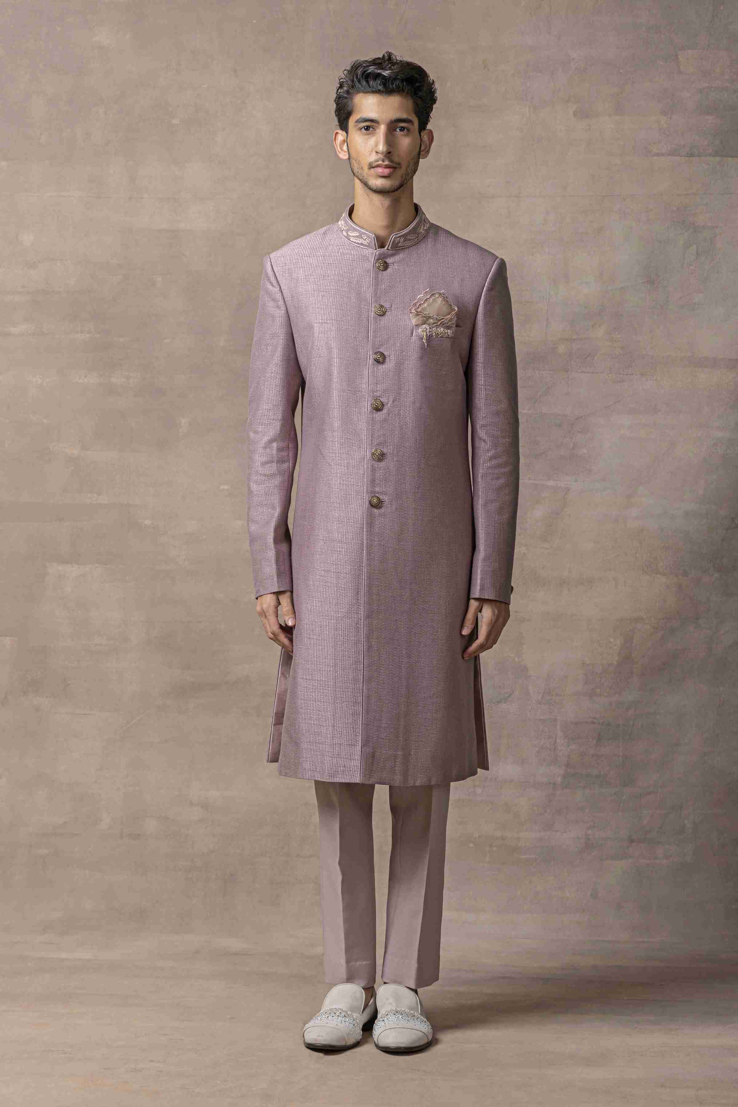 Featuring Dhagai Lavender Sherwani Highlighted With Thread Work Paired With Kurta Pants