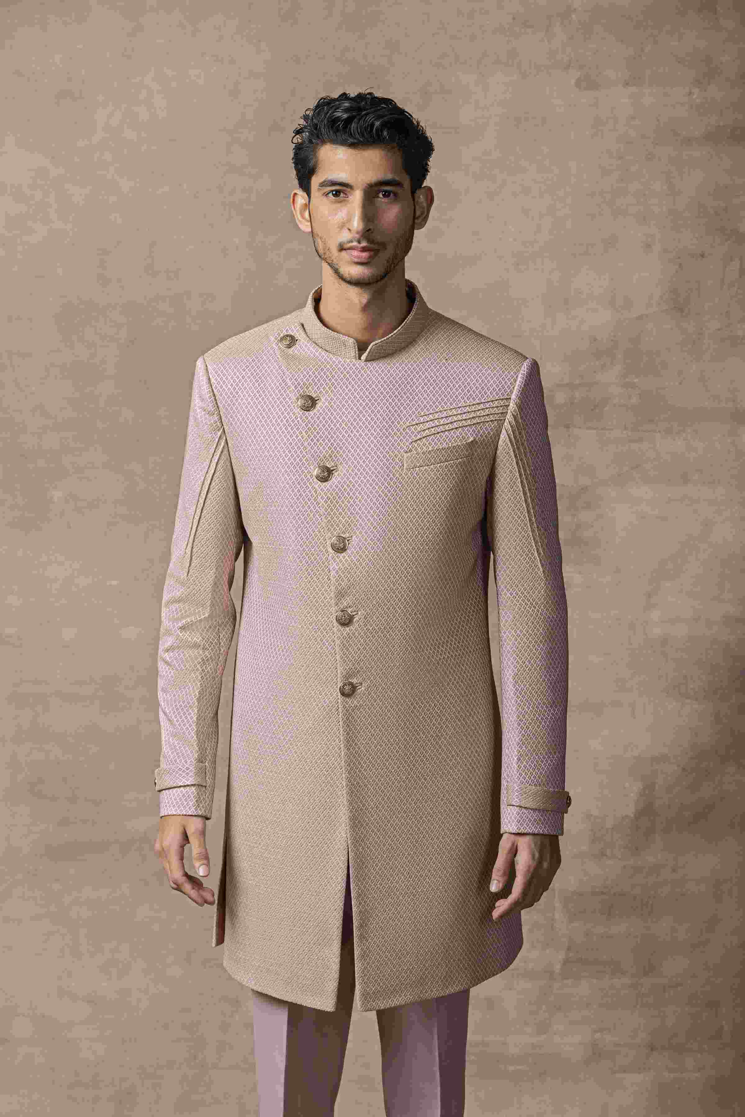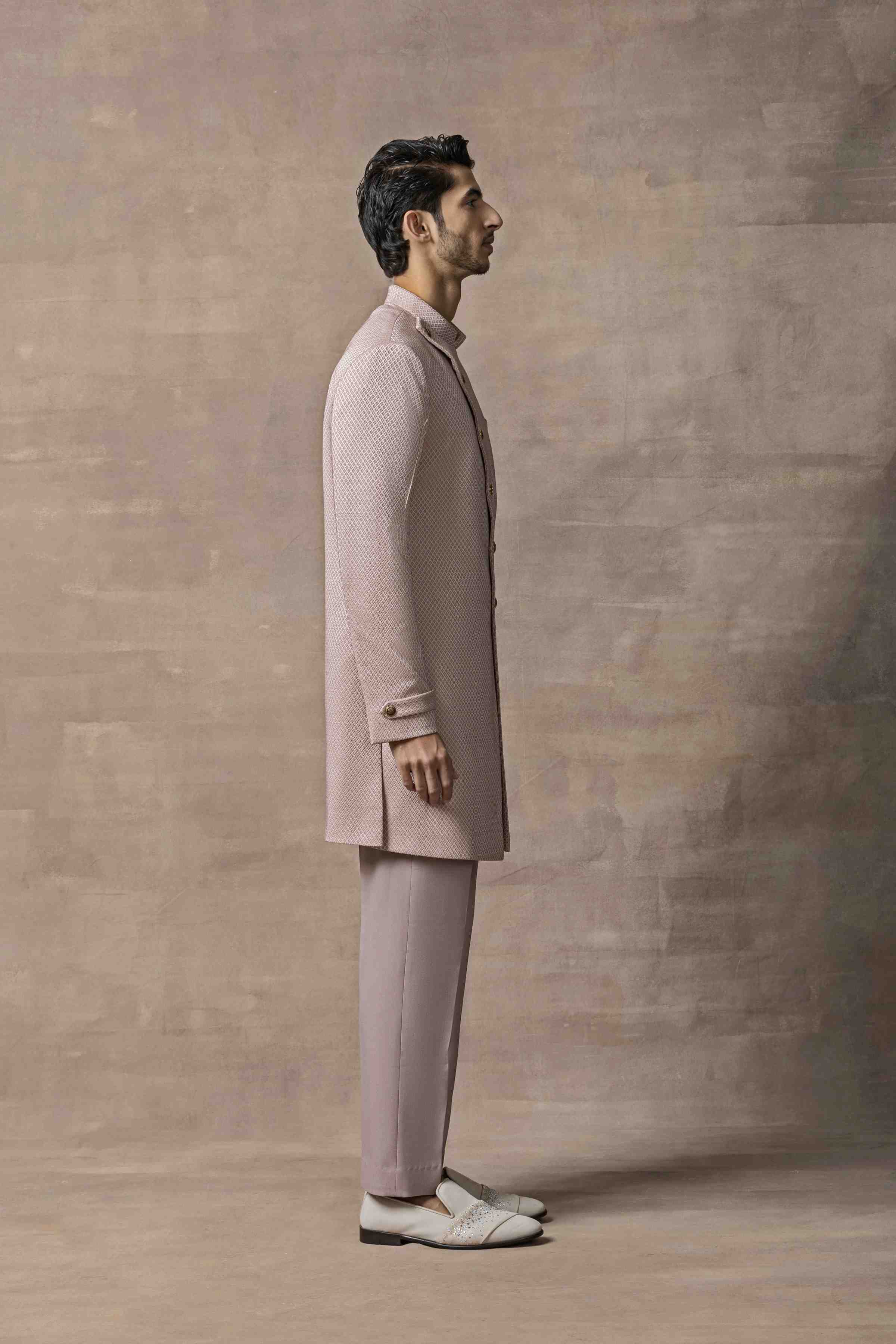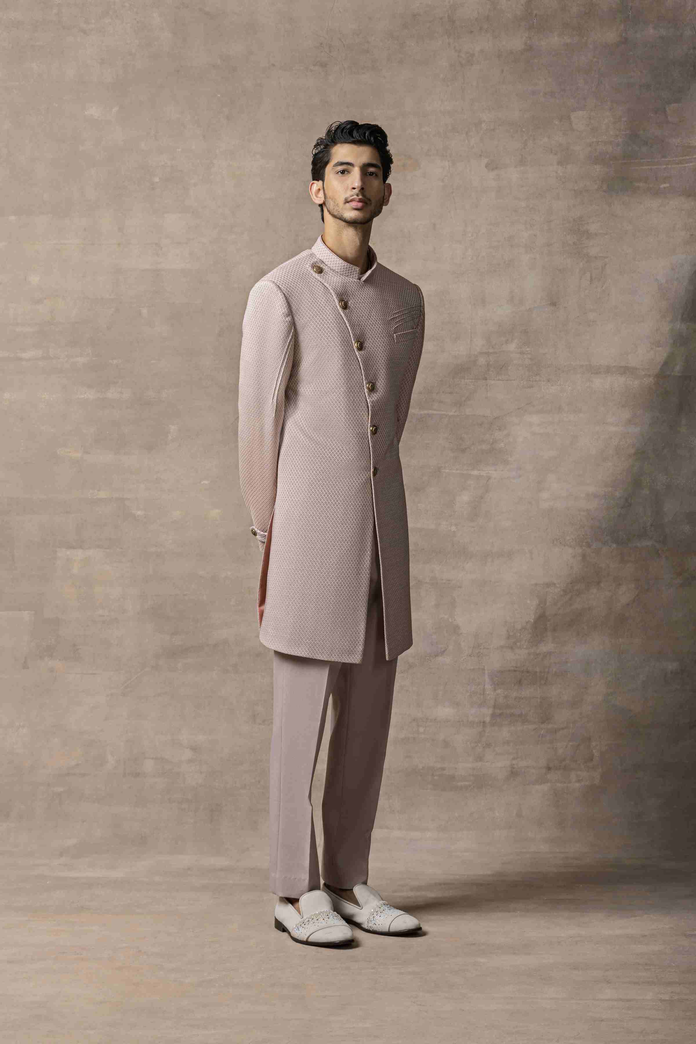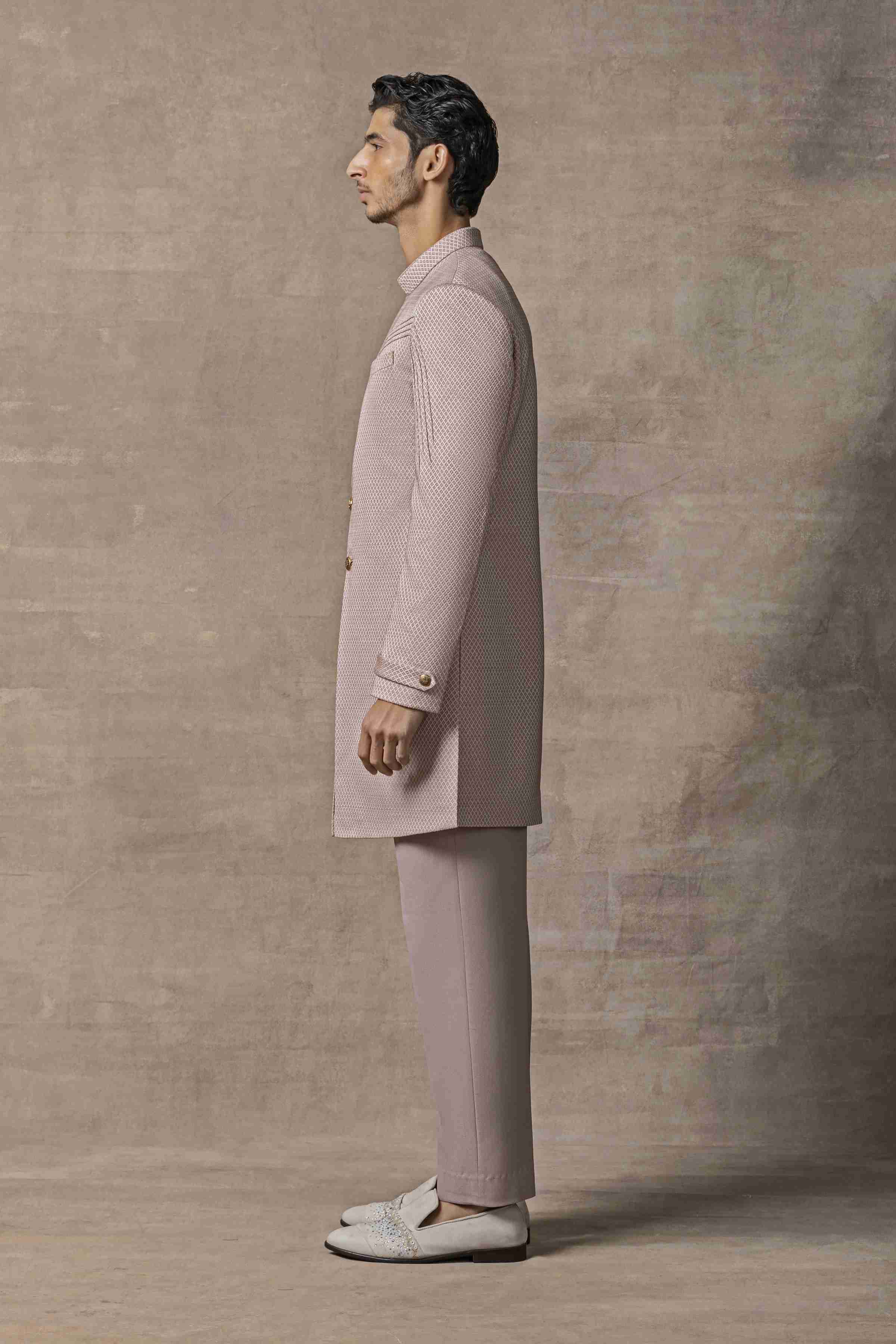 Featuring Dusty Rose Slant Cut Indo-Western Paired With Pants