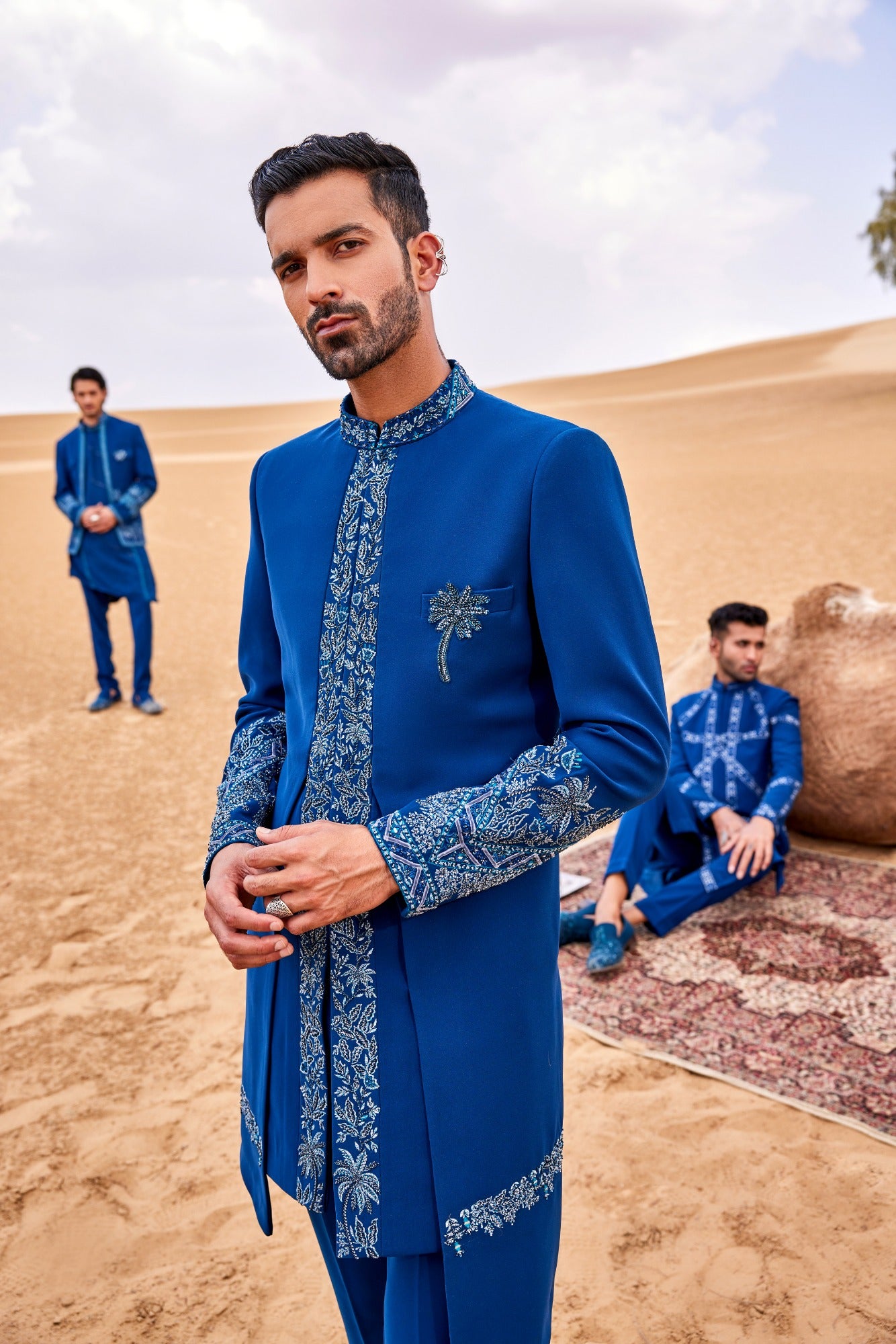 Featuring Indigo Blue Front Open Style Indowestern Highlighted With Pearl And Sequin Work Paired With Indigo Blue Pants