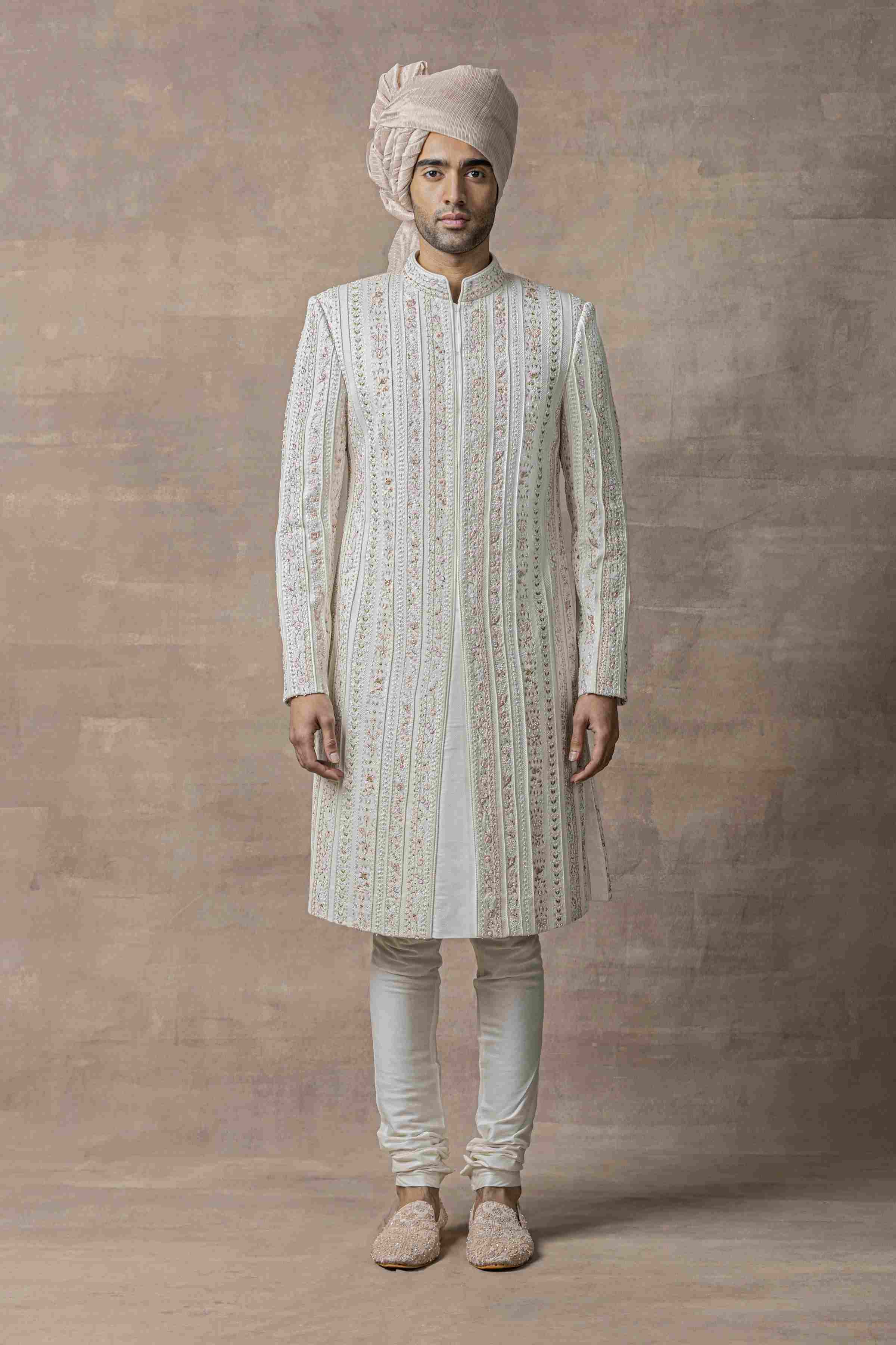 Ivory Sherwani Highlighted With Thread And Pearl Work