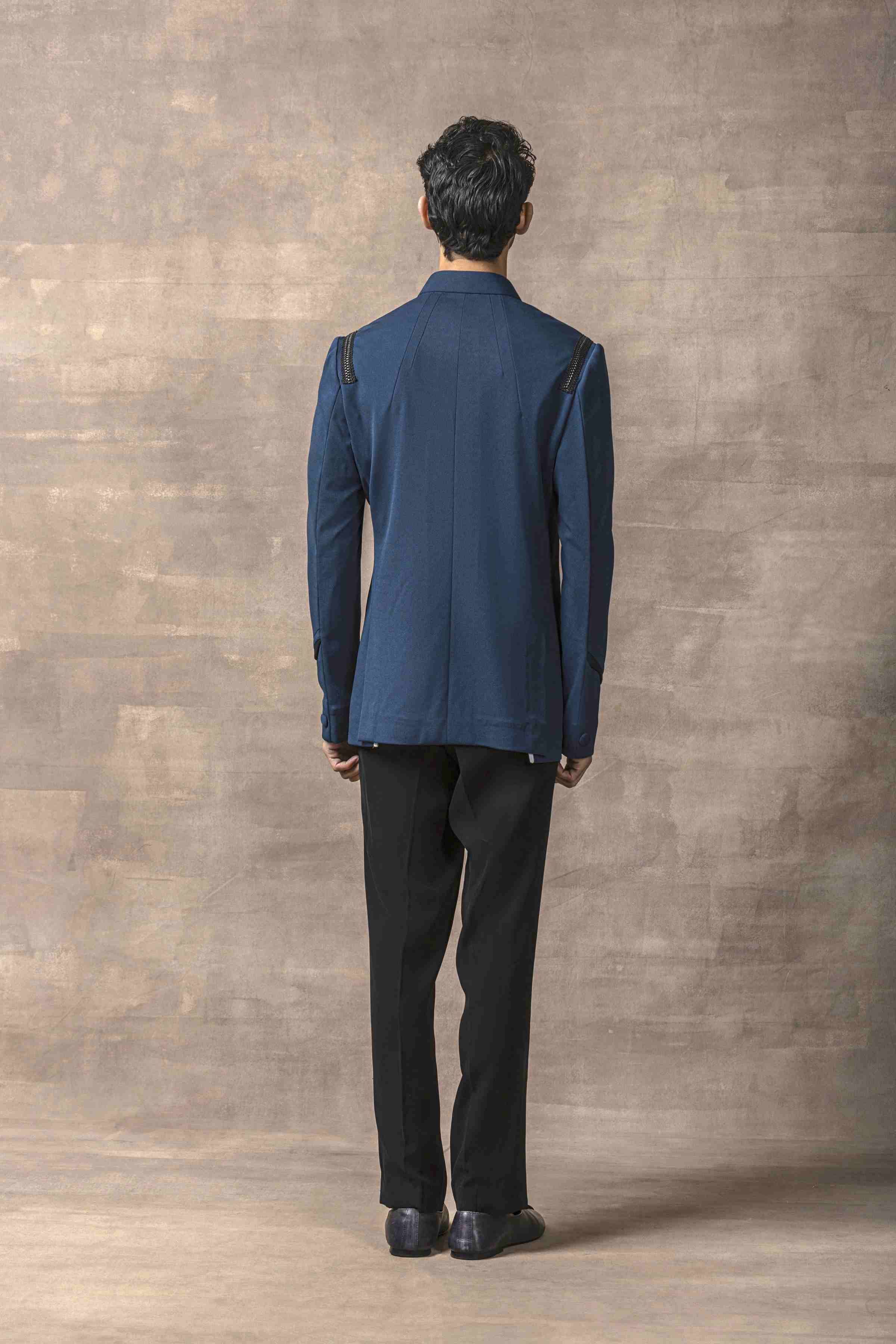 Featuring Teal Bandhgala Highlighted With Black Scalping Paired With Pants